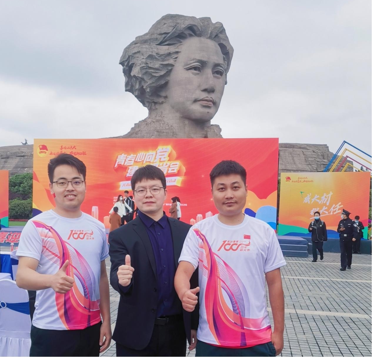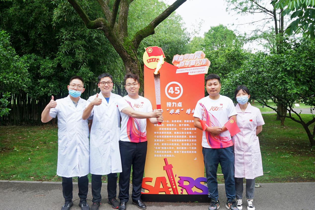 繁花尽染、草长莺飞的橘子洲头,来自长沙市各行各业的100名优秀团青代表集结于此,用脚步丈量这片红色热土,感受共产党员无比坚定的理想信念和情怀,发出“青春心向党 建功强省会”的倡议并完成火炬接力跑。接力跑全赛道约5公里,以“破浪起航,星星之火照山河”“勇毅奋进,开创历史新纪元”“扬帆行远,建设改革立潮头”“奋斗百年,伟大征程再起航”4个篇章,设计了54个特色接力点和打卡点,医院分团作为全市医疗行业代表参加“抗击‘非典’精神”接力点火炬接力,石勇担任主跑手、唐甜担任助跑手完成火炬接力。