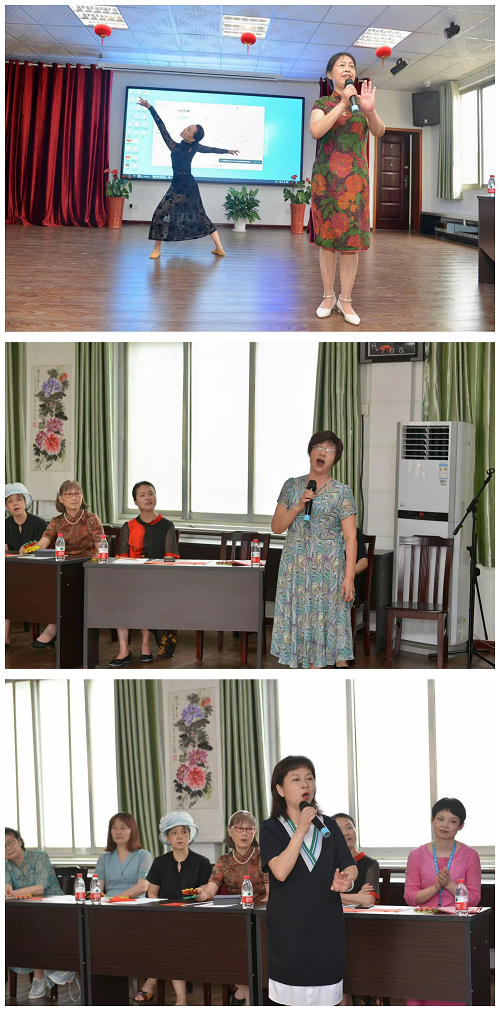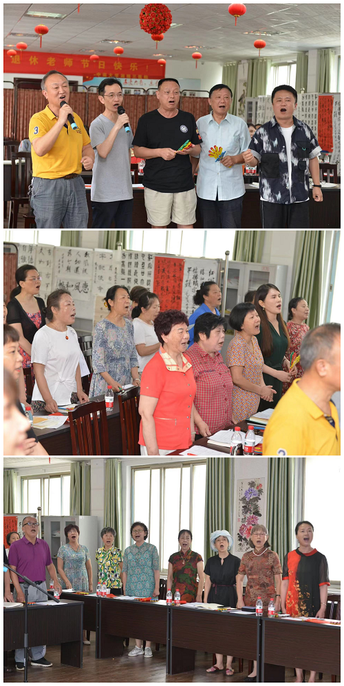 歌会在肖明、王伟玲两位老师精彩绝伦的歌伴舞表演《白头吟》中拉开帷幕,随后两首女声独唱《黄河娘亲》、《我爱你 塞北的雪》分别以黄河代故土代祖国,以歌声描绘北国风光,歌唱对祖国母亲的热爱之情。老同志们用所学专业知识分为高低声部饱含深情地合唱《半个月亮爬上来》、《长城谣》、《只记今朝笑》得到了老师的高度赞扬,随后的红歌联唱《草原上升起不落的太阳》、《我和我的祖国》,把此次活动推向了高潮。老同志们用一首首激流勇进、耳熟能详的经典歌曲,唱出了对祖国的深沉热爱,表达了对中国共产党的敬仰之情。整场演出精彩纷呈,老师和工作人员的献唱给大家带来了一股清流,台上台下热情互动,处处洋溢着一家亲的浓厚氛围、处处展示着广大老同志昂扬的精神风貌。