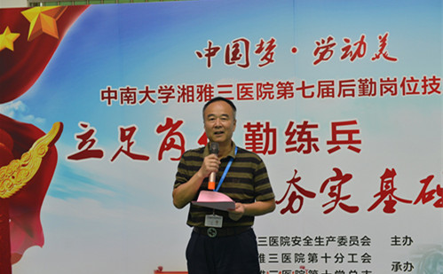 邓云龙在讲话中表示,在七七卢沟桥事变爆发八十五年纪念日举行这一活动非常有意义。当年日寇侵华,国家风雨飘摇,无数革命先烈前仆后继拯救国家危难,所以我们要珍惜现在的美好的生活,学习他们的精神,继承并发扬他们的优良品格。在刚刚过去的6月,是21个国家安全生产月,第七届后勤岗位技能竞赛也是紧紧围绕安全这一主题。安全也是所有工作的基础与前提。新湘雅大后勤人有着优良的传统,一直通过岗位技能竞赛来提升职工的工作能力与水平。希望这一传统一直坚持并发扬下去。各位后勤人也要一如既往在本职工作岗位上尽职尽责,学技术、练本领,技术上精益求精,切实保障和服务医院的发展,为祖国的强盛贡献自己的力量。