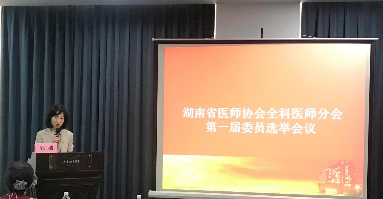 会议由湖南省医师协会副秘书长郭洁主持,按照《湖南省医师协会章程》及《湖南省医师协会专科分会管理办法》相关规定,经湖南省医师协会常务理事会审议通过,同意设立湖南省医师协会全科医师分会,挂靠中南大学湘雅三医院。通过组织程序选举产生了湖南省医师协会全科医师分会第一届委员名单。中南大学湘雅三医院姚晨姣担任湖南省医师协会全科医师分会首任会长,张卫茹、罗荧荃、范自力、刘翠中为副会长,黄爱群、黄芳、林桦、刘飞奇、陆煜、吴健、颜建辉、张辉容8名专家任常务委员(按姓氏拼音排序),胡德喜等16名专家任委员。