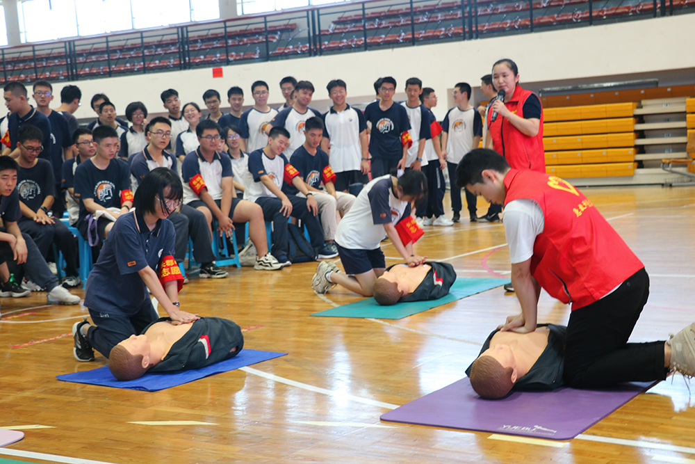 随后由护士朱浩华和刘宁现场模拟示范了心肺复苏、海姆立克急救法的操作步骤,郭美英与急诊科医生吴琼讲述并示范了AED的使用方法,还和学生们充分互动,让每个人都能够参与进来。活动结束后,同学们表示收获很大,学到了很多重要的急救知识技能。