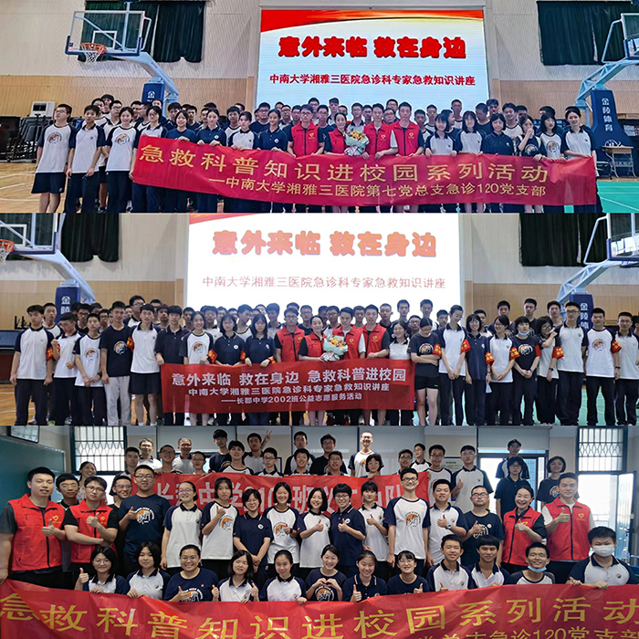 7月10日,中南大学湘雅三医院急诊120党支部在支部书记郭美英的带领下走进天心区长郡中学,为两百余名师生家长开展了“急救科普进校园”公益科普讲座。