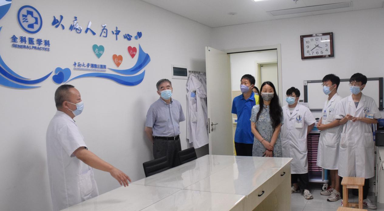 7月8日下午,中华医学会全科医学分会前任主委、中国医科大学原副校长于晓松教授,中华医学会全科医学分会信息管理组组长耿俊强教授等一行3人莅临中南大学湘雅三医院全科医学科视察指导工作,医院全科医学科主任范自力、学科带头人姚晨姣教授、林桦副教授全程陪同。