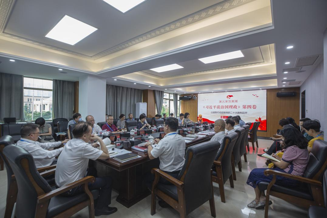 9月20日上午,中南大学湘雅三医院党委理论学习中心组在综合楼一会议室召开2022年第十次集体学习(扩大)会,党委书记何庆南领学《习近平谈治国理政》第四卷,全体在院党委委员、党群部门负责人、党总支书记参加学习,并集体学习观看视频《<习近平谈治国理政>第四卷导读》。
