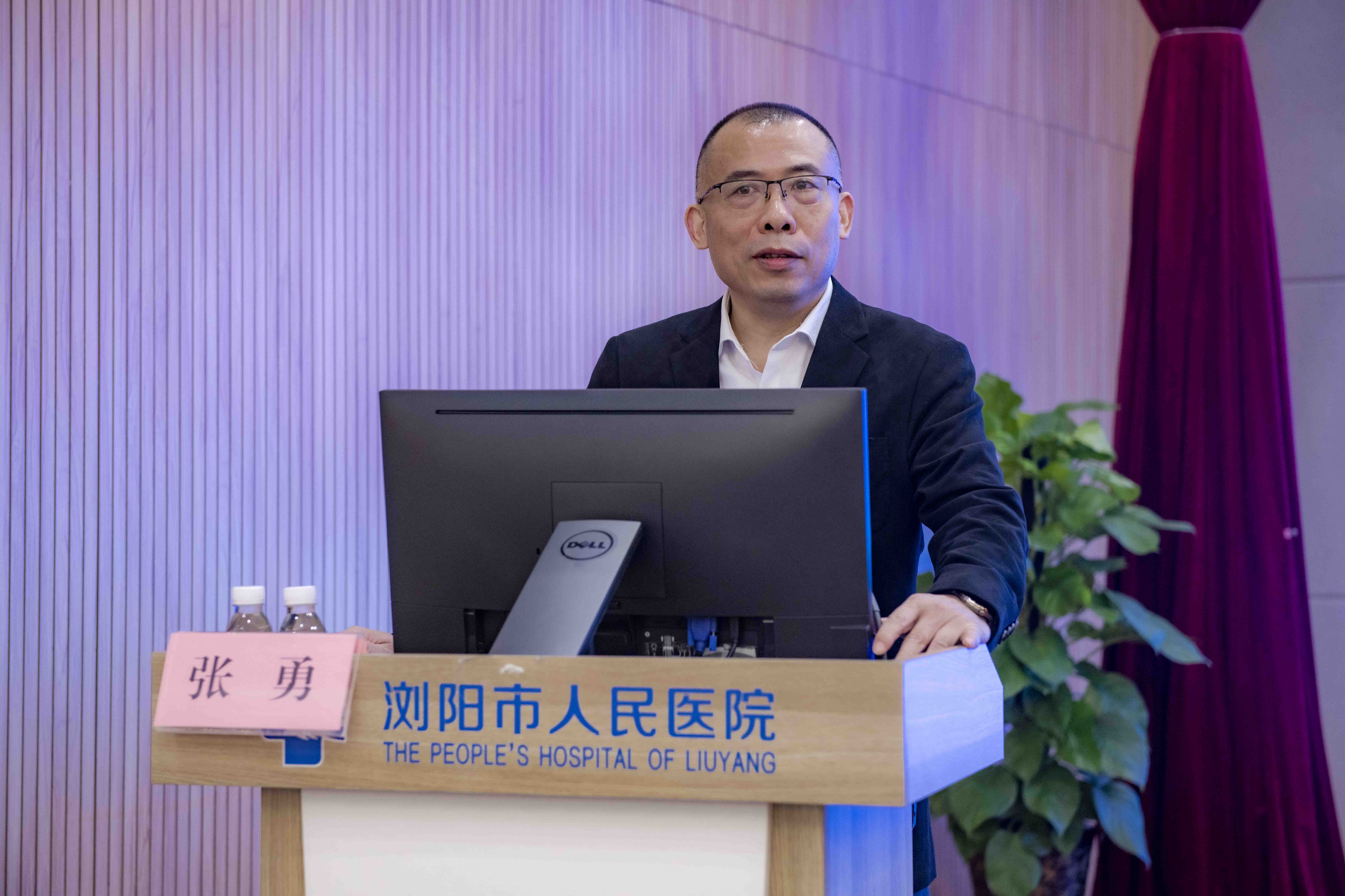 浏阳市人民医院党委书记张勇向与会同仁表示热烈欢迎。他表示浏阳市人民医院将在湘雅三医院的帮扶下通过优化资源配置、优质医疗资源下沉、三甲创建、科研教学,全力打造省级边界类区域医疗中心。