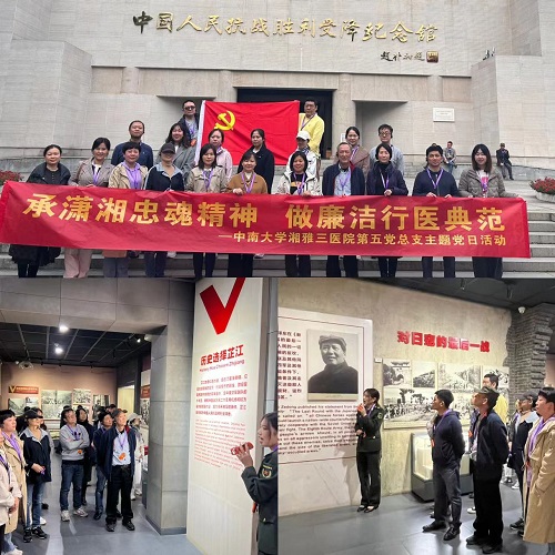 为深入学习贯彻习近平新时代中国特色社会主义思想,落实医院党风廉政宣传教育月活动精神,11月18日至19日,湘雅三医院第五党总支组织部分党员赴怀化市芷江侗族自治县、洪江区开展“承潇湘忠魂精神 做廉洁行医典范”主题党日活动。活动先后前往中国人民抗日战争胜利受降纪念馆、洪江区地下党支部旧址等地,以现场教学、情景教学、信念教育等形式开展红色革命传统教育,强化党员党性教育。