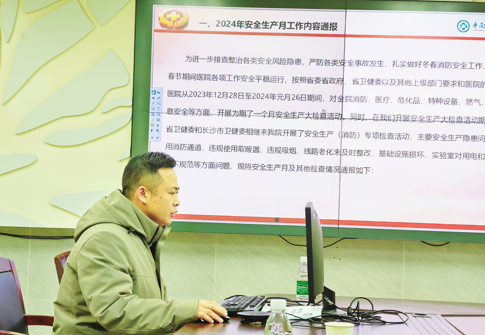 1月31日上午,中南大学湘雅三医院召开全院安全生产工作会议,主会场设在外科楼二楼学术报告厅,所有临床医技科室通过线上参会,全院共3000余人参会。党委书记何庆南、院长江泓讲话,党委委员、副院长欧阳文主持会议。