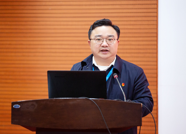 程海威作共青团工作报告并介绍本次活动背景。他系统总结了近年来医院共青团在思想引领、组织建设、岗位建功、文化建设、青年成长服务等方面取得的工作成绩,具体阐述了团青干部的职能定位及新时代青年工作的使命担当,传达了上级工作指示精神,为参会人员明确了未来工作方向。