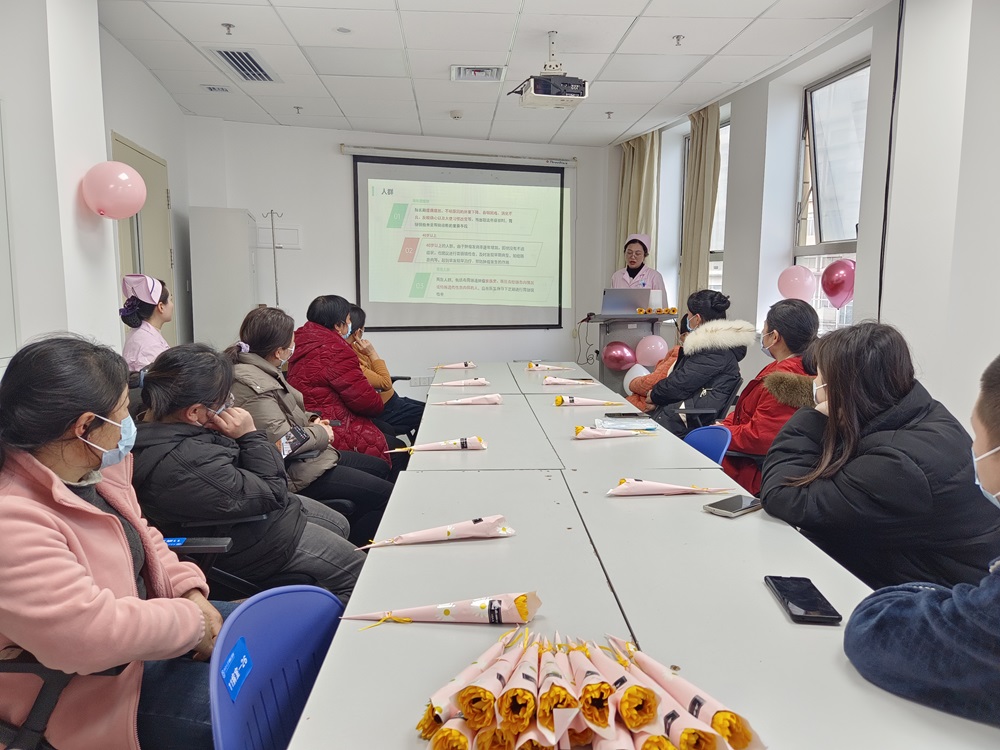 三月春意浓,情暖妇女节。 在第115个三八国际劳动妇女节即将到来之际,为了进一步科普肠息肉健康相关知识,同时为女性患者送去节日的祝福,3月6日下午,中南大学湘雅三医院消化内科病区开展了“关爱女性,从‘肠’计议”为主题的患教会系列活动。此次活动为患者提供了专业的医疗知识,让患者在轻松愉快的氛围中收获了健康与关爱。