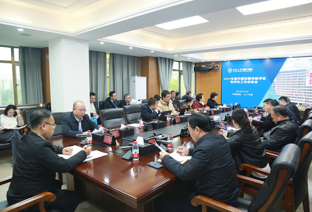 3月12日下午,中南大学湘雅三医院2024年度内控风险评估和评价启动会在综合楼一会议室召开。医院院长江泓、总会计师费云出席会议并讲话,深圳卓越医疗绩效管理咨询公司项目组成员、相关职能部门负责人参加会议。会议由医院党委副书记、纪委书记张劲强主持。