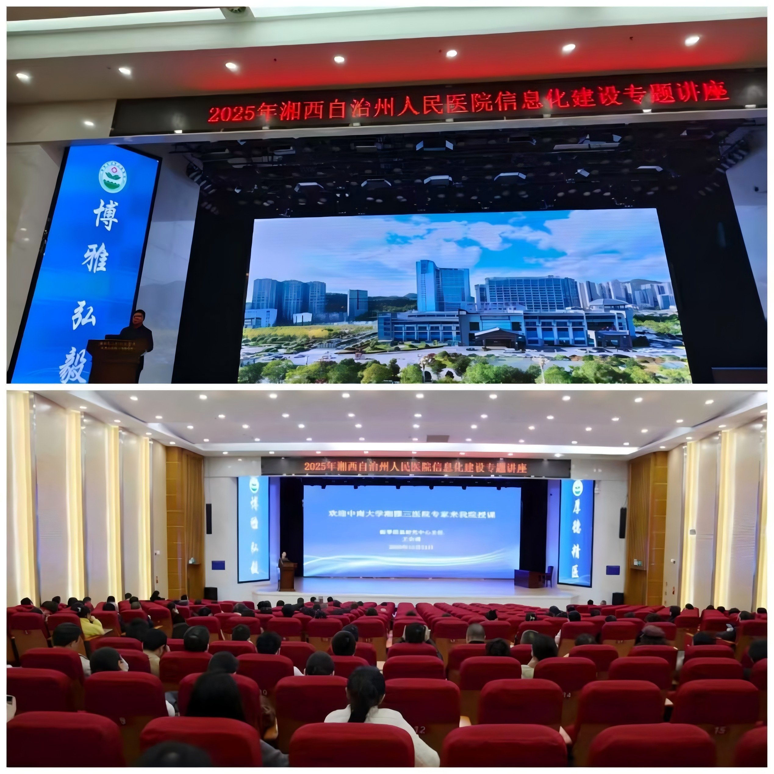 杨飞龙在讲座中进一步强调医院信息化建设的战略意义。医院信息化建设是筑牢医疗质量安全底线、推进精细化管理、提升诊疗效率的关键抓手。针对湘西自治州人民医院“信息化底子薄、投入不足、经验欠缺,部分人员重视度不够” 的现状,他提出三点建设思路:一是坚持临床导向,以临床需求为核心,杜绝形式主义,确保系统贴合诊疗实际;二是聚焦体验提升,通过流程再造改善患者就医感受与医院运营效率;三是深化资源共享,湘雅三院将持续开放技术文档、培训资源,助力建设加速推进。