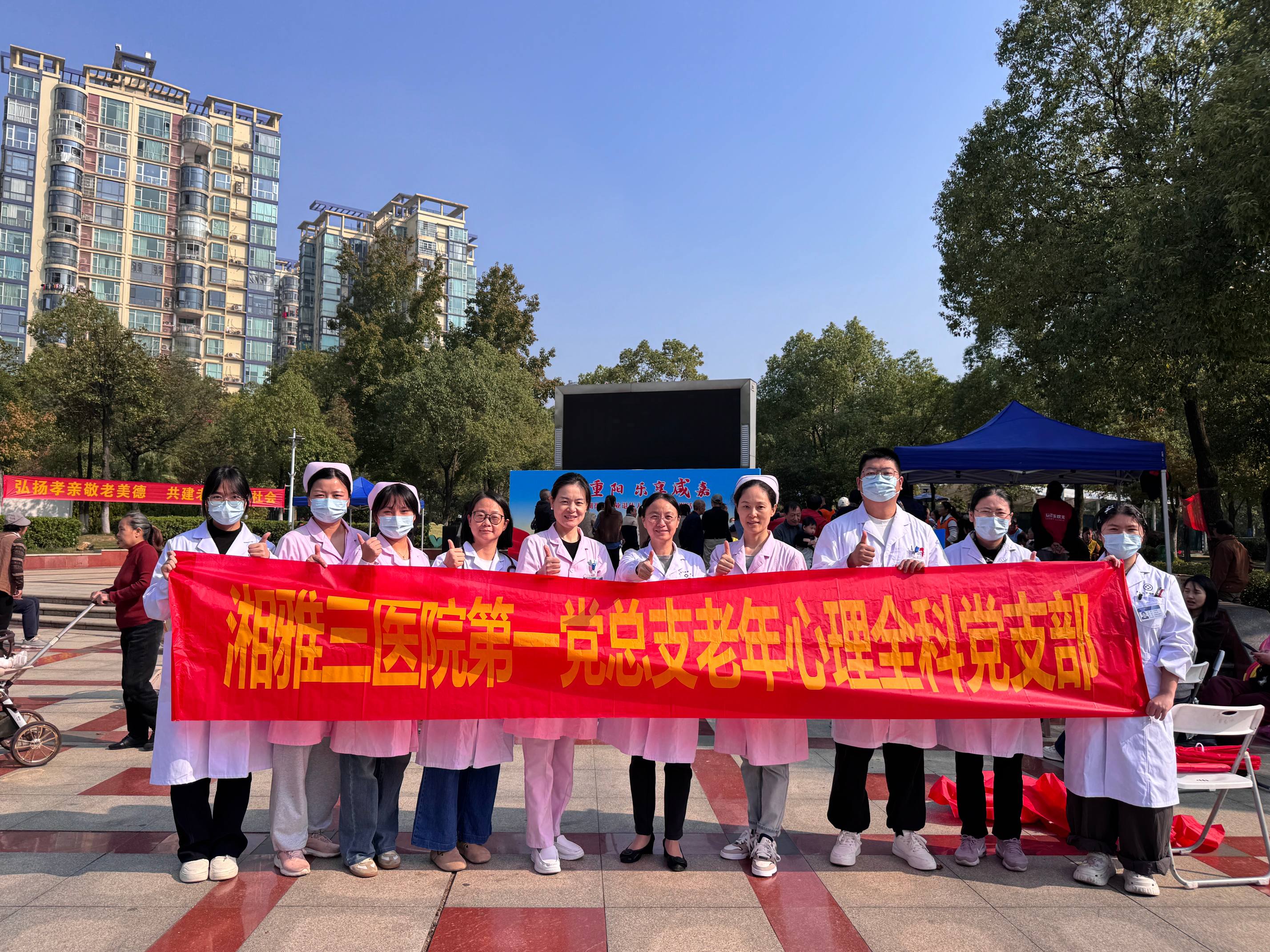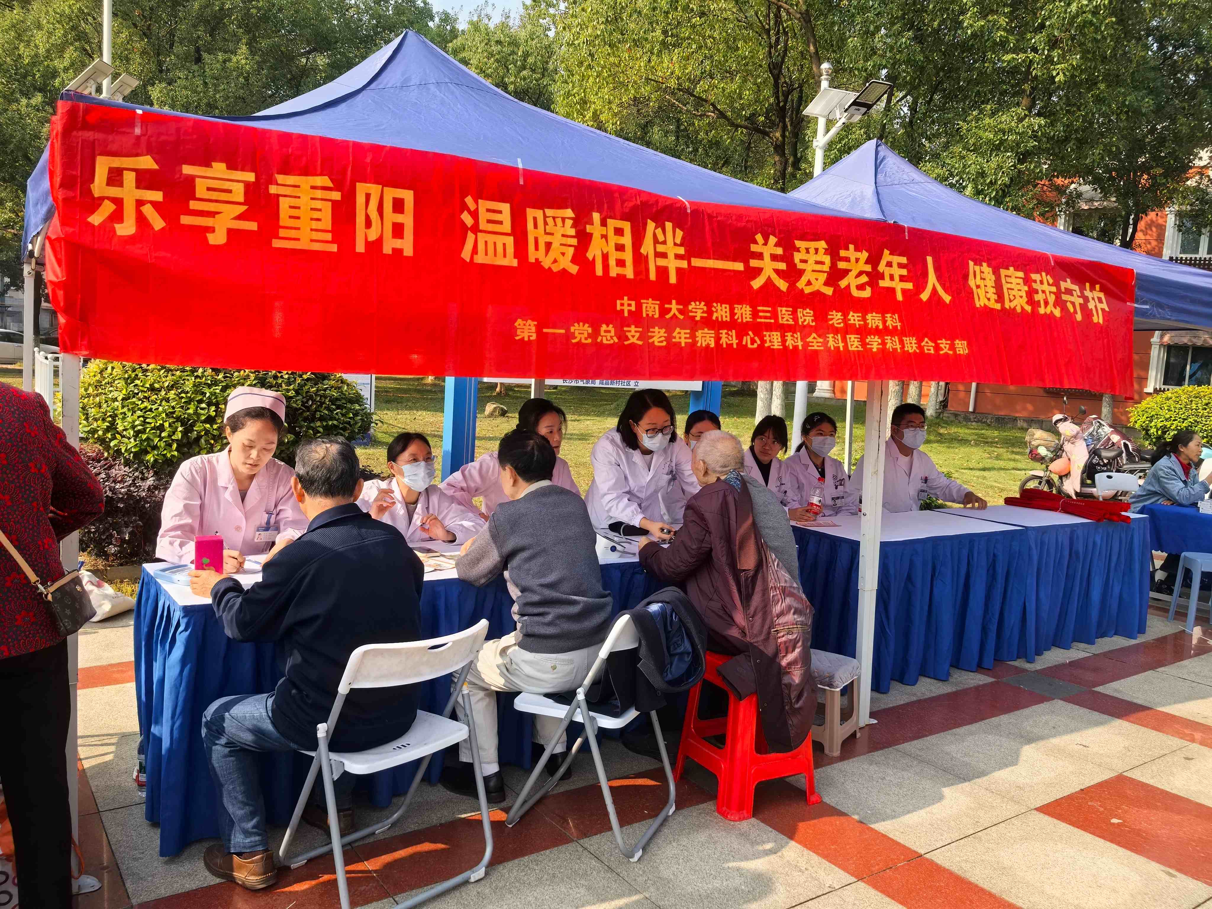 为弘扬尊老敬老传统美德,关注老年人健康状况,10月28日上午,中南大学湘雅三医院第一党总支老年病科、临床心理科及全科医学科的医护走进咸嘉新村社区,开展以“乐享重阳 温暖相伴——关爱老年人 健康我守护”为主题的义诊活动,为社区老年居民提供健康服务。