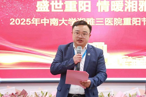 金秋送爽,又逢重阳。10月27日下午,在一年一度的九九重阳节即将到来之际,中南大学湘雅三医院2025年离退休人员重阳节座谈会在离退休人员活动室举行。中南大学离退休工作处党委书记何桂强,院领导何庆南、江泓、张劲强、费云、曹科、容鹏飞以及相关职能部门负责人、青年教师代表、学生代表与退休的老领导、老同志欢聚一堂,共叙情谊,同庆佳节。座谈会由党委委员、副院长曹科主持。