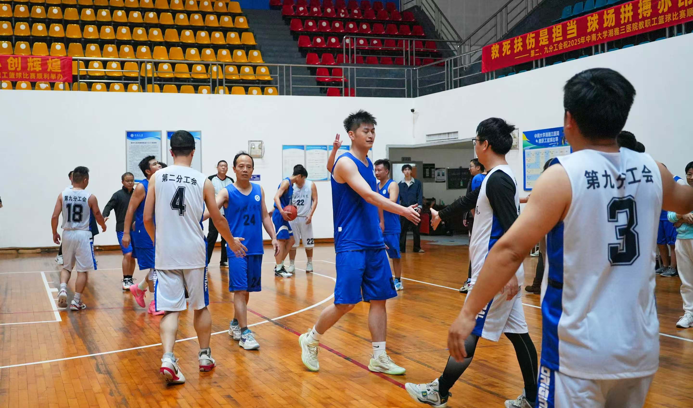 由中南大学体育教研部副主任易国忠进行跳球后,比赛正式拉开帷幕。赛场上,平日里手持手术刀、听诊器的白衣天使们化身活力四射的运动员,你争我夺,攻防有序。精准的投篮、巧妙的传球、坚固的防守、精彩的快攻,赢得了场边观战的同事和家属们的阵阵喝彩与掌声。整个赛场气氛热烈,高潮迭起,充分展现了医院职工不仅能在专业领域精益求精,在体育竞技中也同样能奋勇争先。