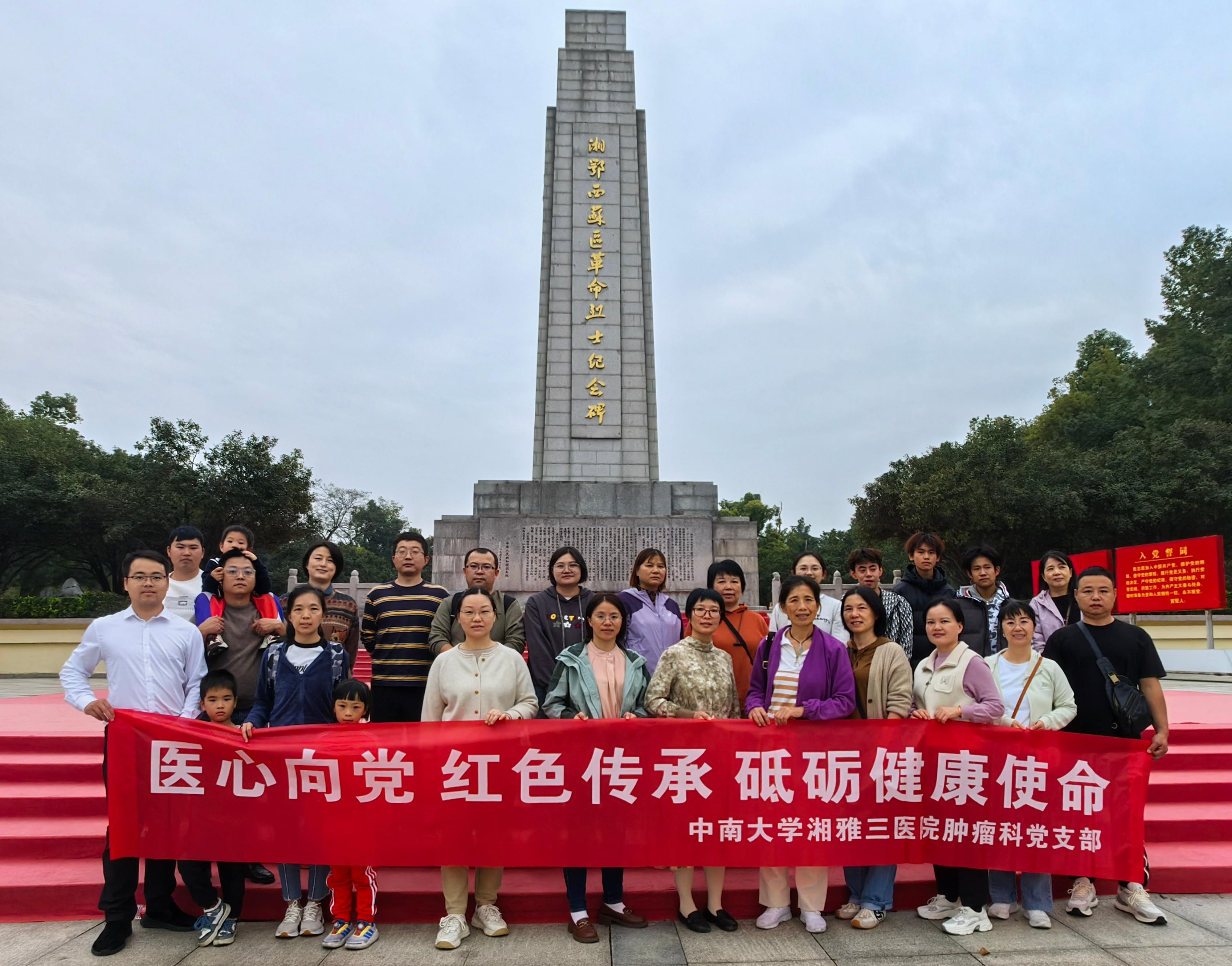 为深入推进党史学习教育常态化长效化,传承红色基因,汲取奋进力量,11月1日至2日,中南大学湘雅三医院肿瘤科党支部组织党员及业务骨干前往荆州洪湖开展“医心向党 红色传承 砥砺健康使命”主题党日活动。
