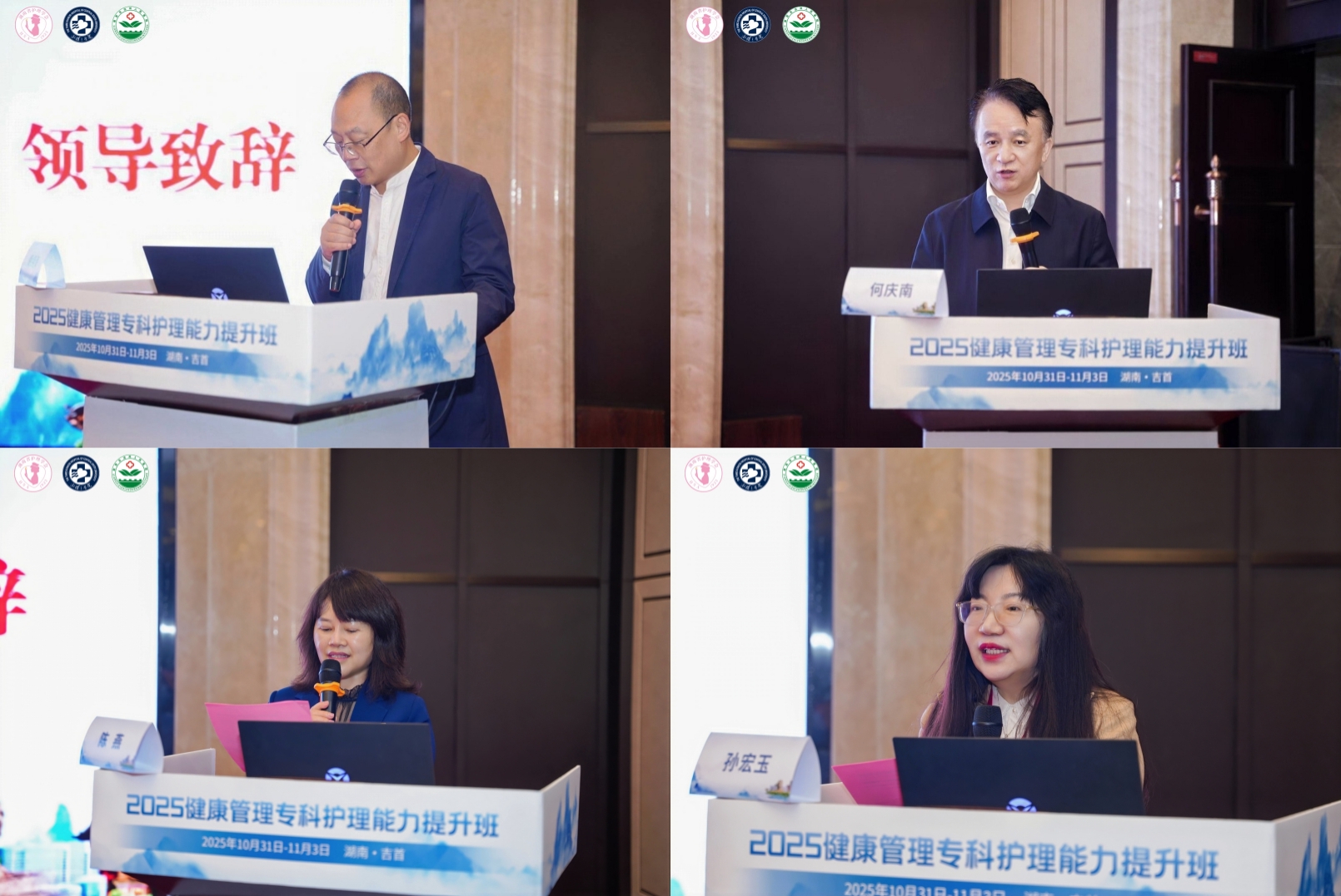 开幕式由中南大学湘雅三医院护理部主任严谨主持。湘西自治州人民医院党委书记黄纯海、中南大学湘雅三医院党委书记何庆南、湖南省护理学会理事长陈燕、教育部高等学校护理类专业教学指导委员会秘书长孙宏玉先后致辞。与会领导共同强调,本次培训打破优质资源地域壁垒,为武陵山片区健康管理护理事业注入发展动能。