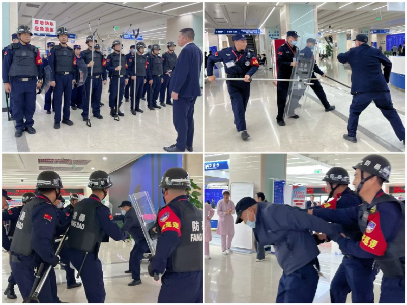 最后,活动开展反恐防暴应急处置演练。演练模拟一名 “暴徒” 闯入门诊大厅寻衅滋事的突发场景,医院安保应急小单元迅速响应,按照应急预案分工协作,手持防暴盾牌、防暴钢叉等器材果断处置,快速控制现场局势,成功 “制服”“暴徒”,有效保护了现场人员安全。此次演练直观检验了医院应对突发恐怖暴力事件的快速反应能力、协同作战水平和应急预案的实用性、可操作性。