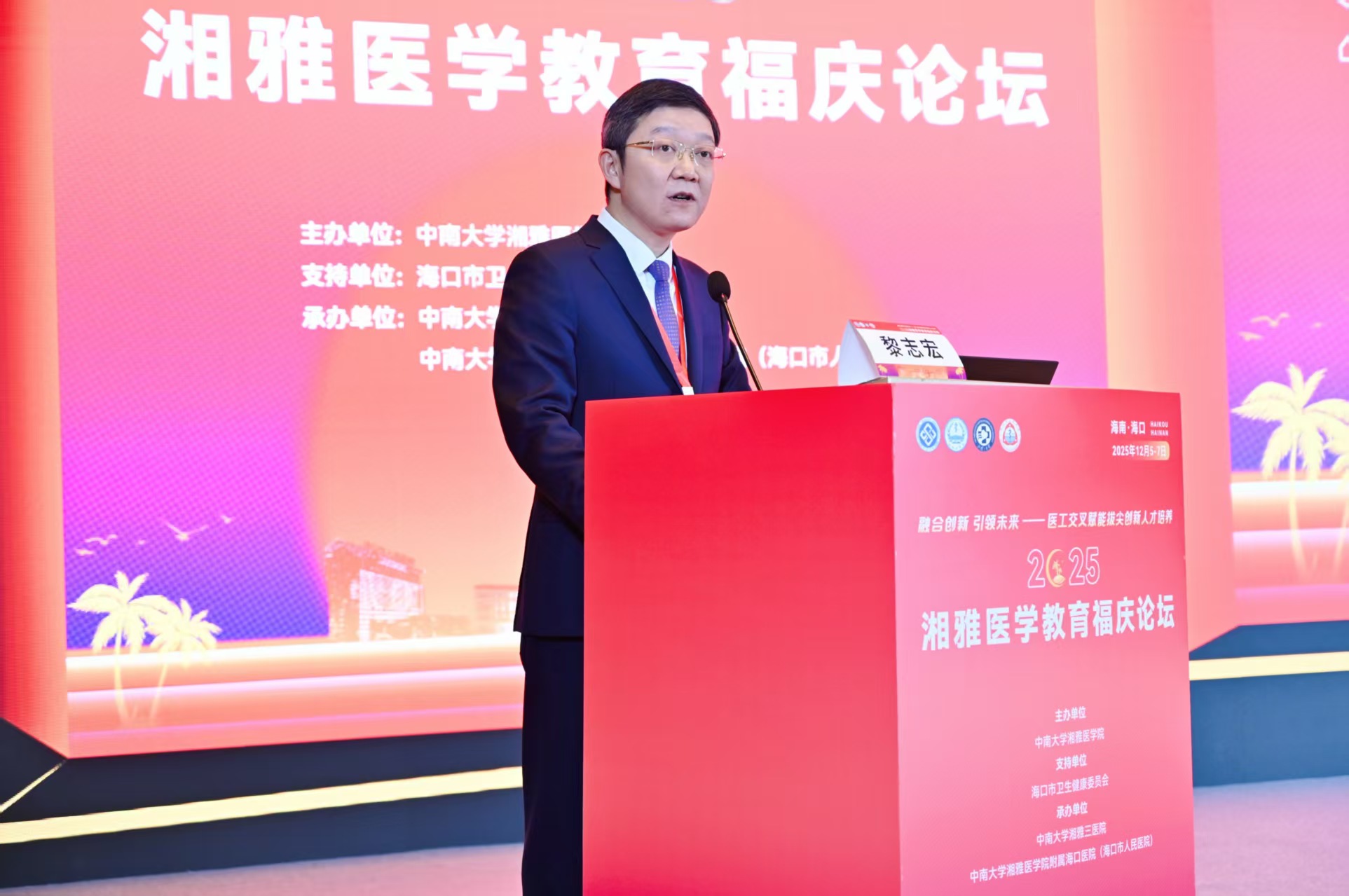 2025年12月6日至7日,“2025湘雅医学教育福庆论坛”在海南海口成功举办。本届论坛由中南大学湘雅医学院主办,中南大学湘雅三医院、中南大学湘雅医学院附属海口医院(海口市人民医院)共同承办,中南大学湘雅系十余家二级学院及附属医院联合协办。论坛以“融合创新 引领未来——医工交叉赋能拔尖创新人才培养”为主题,吸引了来自全国医学教育、医工交叉领域的专家学者、医院管理者、教师代表等近500人现场参会。