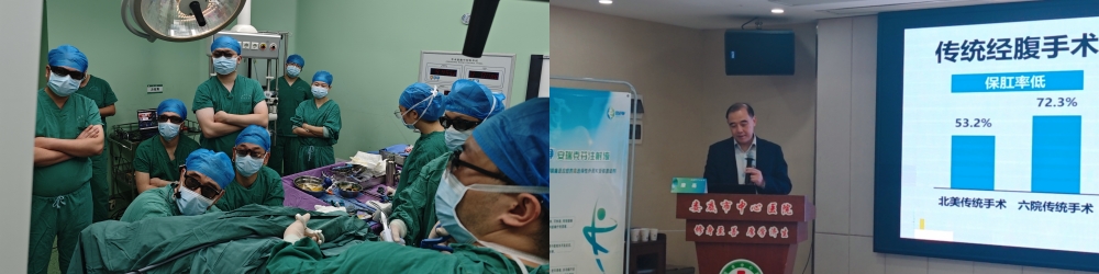 随后,中山大学附属第六医院康亮教授团队现场演示了一台“经肛经腹联合腔镜下低位直肠癌根治术(taTME)”。张翼教授组织与会专家就手术质量控制与康亮教授进行深入交流。中南大学湘雅三医院周剑宇副主任医师、戴荆主治医师及本地骨干医师围绕taTME技术应用、初学者注意事项、手术关键步骤等议题展开讨论,学术氛围热烈。