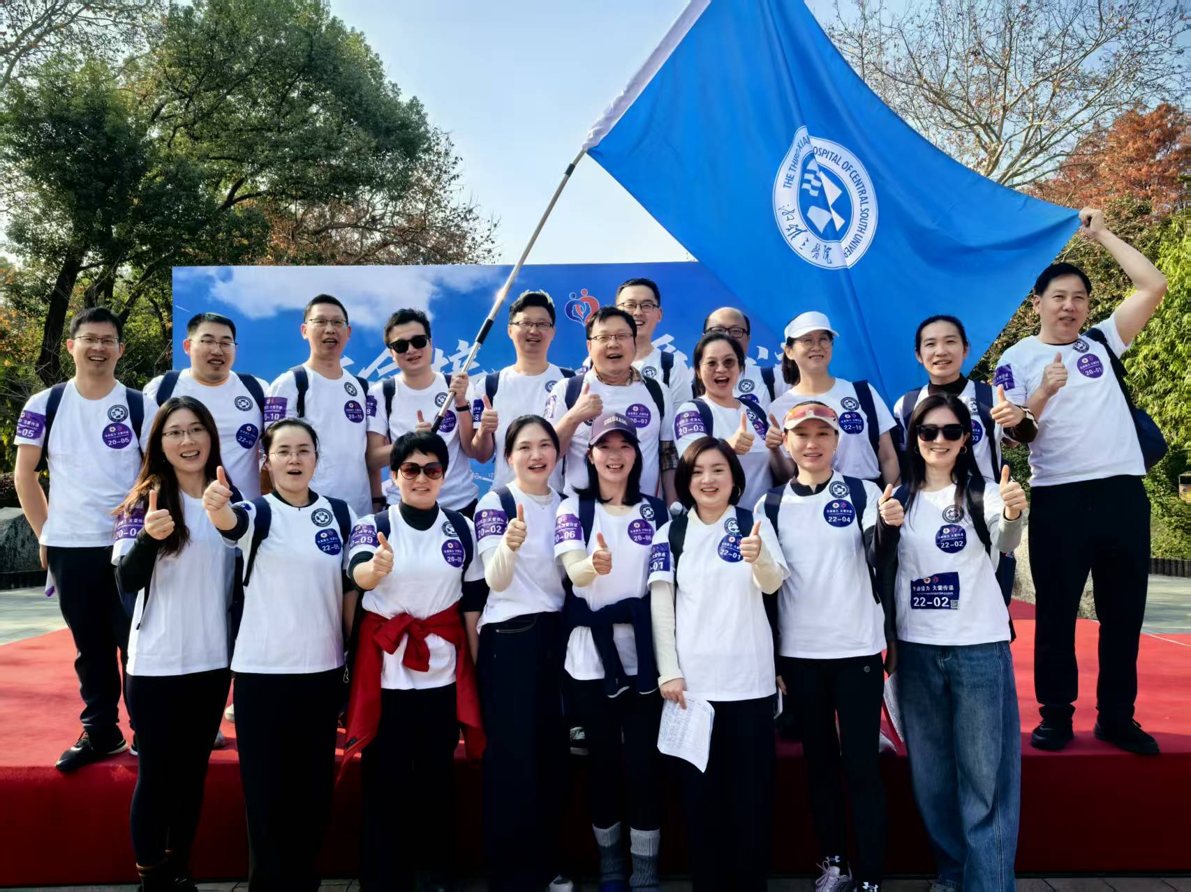 本次比赛将健康越野与公益宣传深度融合,参赛队伍需在完成越野任务的同时,沿途完成“三献(移植器官捐献、干细胞捐献、无偿献血)”知识的宣传、答疑和爱心理念传递。湘雅三医院代表队由张劲松副主任带领来自OPO(器官获取组织)、器官移植科、医务部、手术中心等多部门骨干联合组成。赛前,团队进行了周密的策划与演练,精心准备了院旗、带有医院标志的统一服装和通俗易懂的宣传物料。