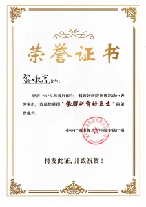 1月23日,由中央广播电视总台中国交通广播、云听APP联合发起,中国医院协会指导的“2025科普好医生、科普好医院主题发布活动”在北京圆满落幕,中南大学湘雅三医院麻醉科黎暾亮主治医师凭借扎实的专业功底、创新的科普实践与广泛的社会影响力,荣获“金牌科普好医生”殊荣。