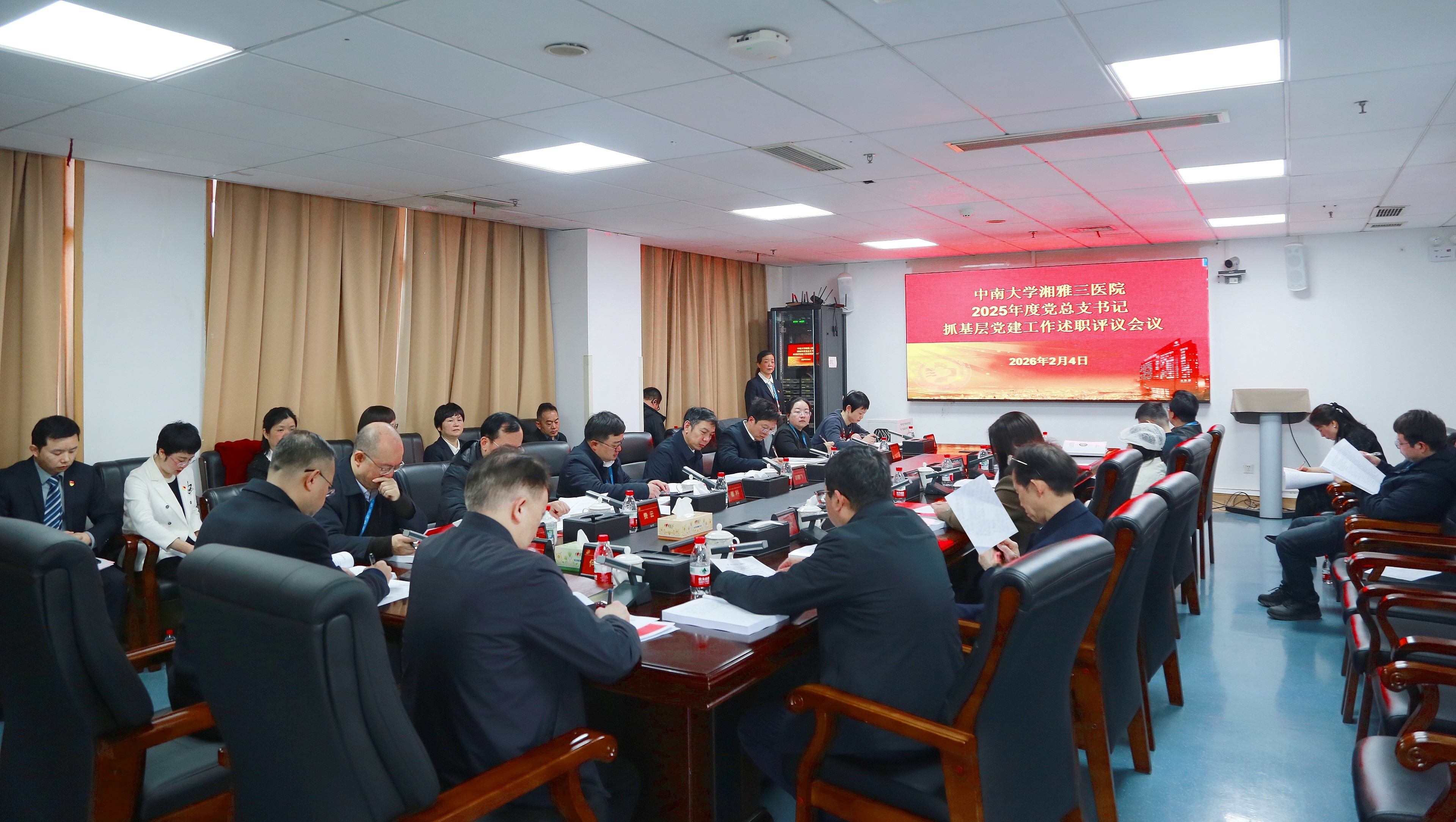 2026年2月4日,中南大学湘雅三医院在外科楼19楼举行2025年度党总支书记抓基层党建工作述职评议会议。全体院领导、党群部门负责人及党总支书记参加会议。医院党委副书记杨飞龙主持会议。
