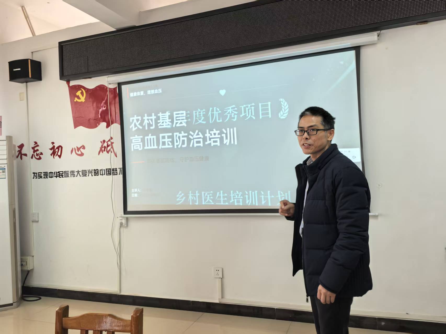 此次送医下乡活动获得当地群众广泛认可与好评,大家纷纷对活动表示赞许,并期盼未来能持续开展此类便民医疗服务。 义诊结束后,老年医学科陈志雄医生随即赶往码市镇中心卫生院,依托《国家基层高血压防治管理指南(2025版)》,开展“农村基层高血压防治培训”专题授课。此次培训旨在提升乡村医生高血压防治专业能力,着力改善农村高血压知晓率、治疗率、控制率“三低”现状,筑牢农村健康防线,推动实现“健康体重,理想血压”的防控目标。