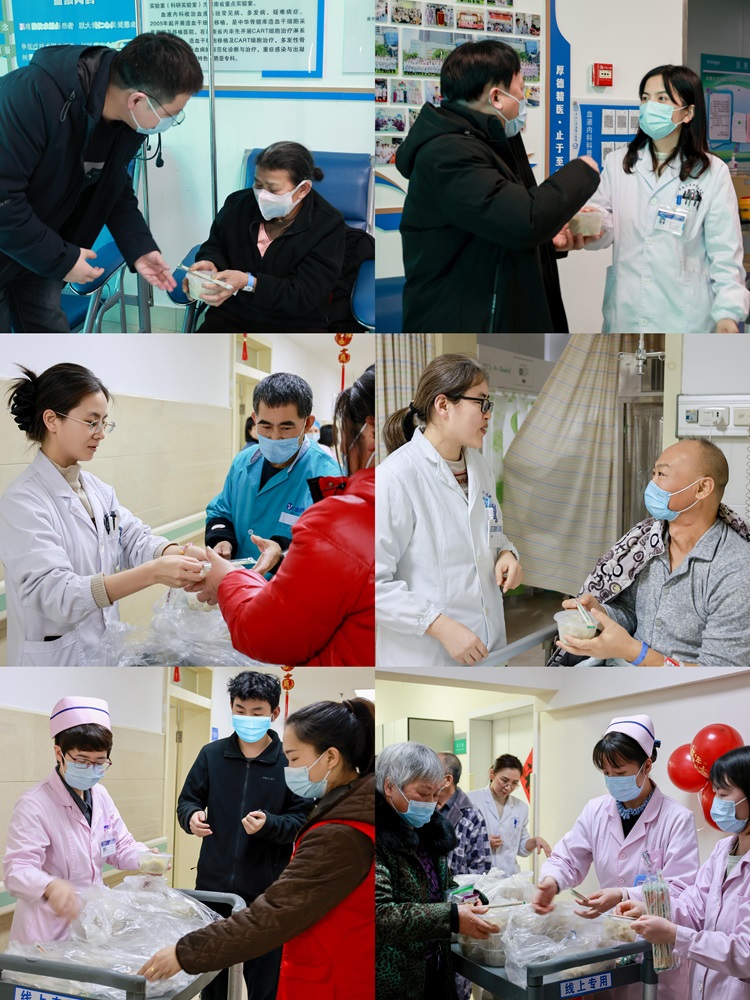 随后,院团委程海威书记、李昕主任、王二华副主任、医护代表及志愿者们将一碗碗热气腾腾、象征团圆吉祥的饺子亲手送至每位患者床前。“小心烫,祝您早日康复!”一句简单问候、一个真挚笑容,让不少患者与家属感动不已,也为这个小年增添了浓浓的温情。