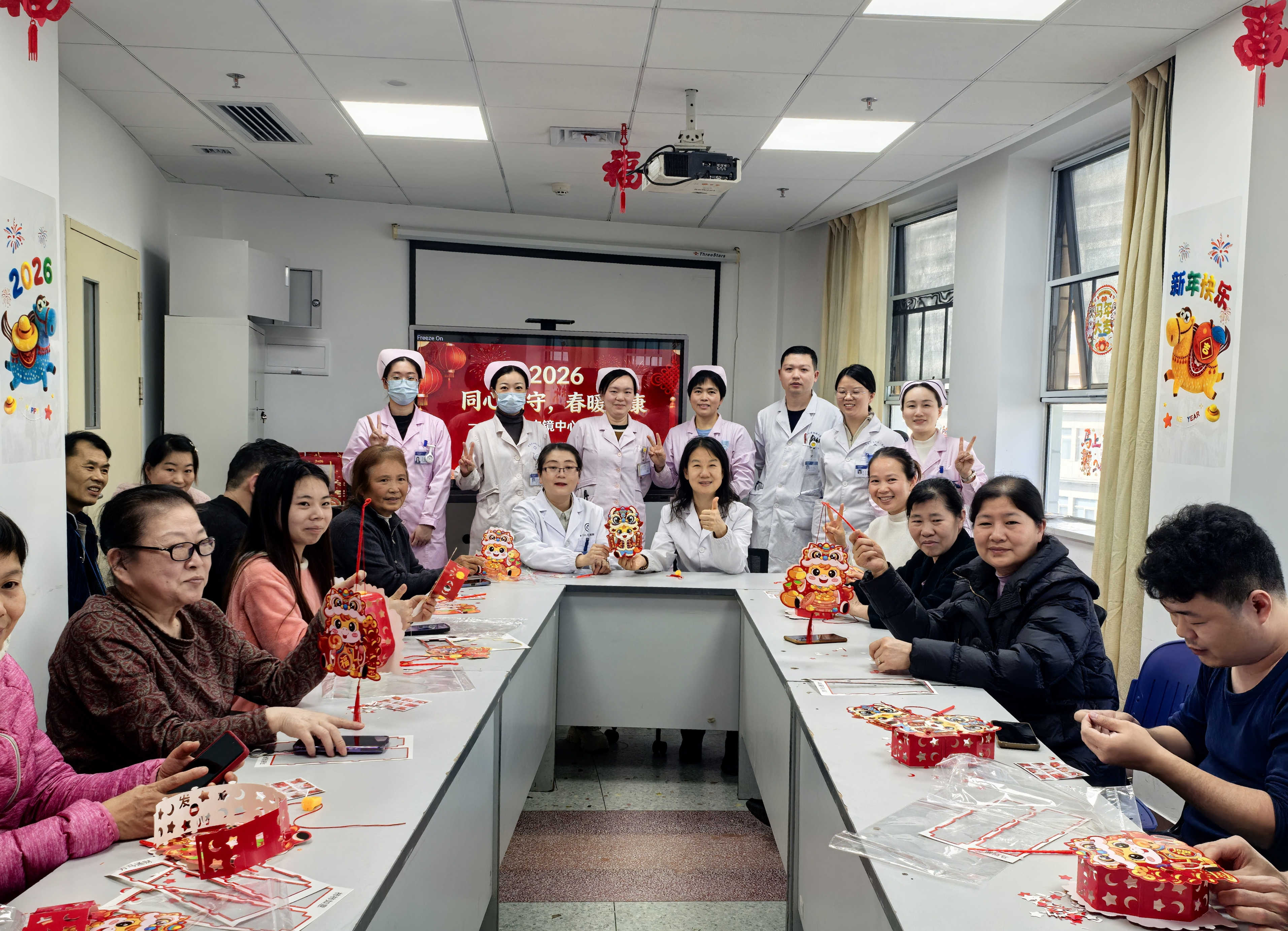 随后的手工灯笼制作环节,成为现场最温馨的一幕。医患围坐一堂,相互协作、彼此指导,组装成型,王晓艳主任与各位教授也加入其中,和患者一同动手创作,聊聊新年心愿,交流制作技巧,病房里欢声笑语不断。一张张彩纸在巧手下变成红彤彤的手工灯笼,每一盏都承载着对新春的期盼、对健康的向往,更凝聚着医患同心的温情。