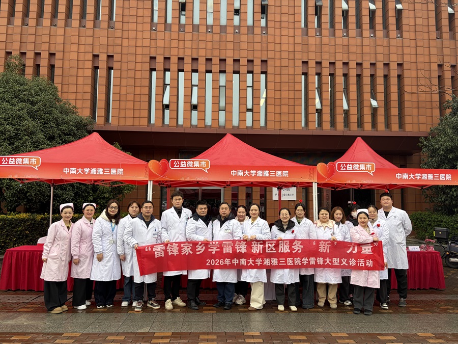 3月3日,中南大学湘雅三医院门诊部组织儿科、眼科、整形美容科、口腔科、康复科、泌尿外科、疼痛科、皮肤科等多学科20余名医务人员,在湖南湘江新区西湖公园秀广场开展学雷锋公益义诊活动。本次活动响应 “雷锋家乡学雷锋 新区服务‘新’力量”2026 年湖南湘江新区志愿服务主题活动号召,将健康服务送到群众身边。