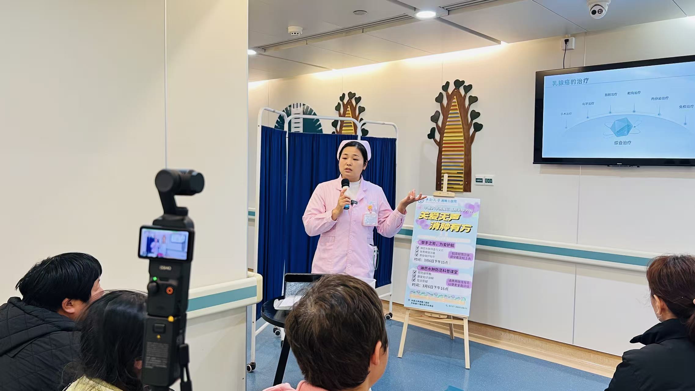 2026年3月6日下午,中南大学湘雅三医院乳甲外科以“关爱无声,消肿有方”为主题,举办国际淋巴水肿日公益活动。活动采取“线下互动+线上直播”双线并行的形式,吸引众多患者及家属参与,实现了广泛的知识传播与情感联结。乳甲外科护理团队借此契机,通过筛查、科普、互动相结合的方式,向社会传递“预防为主、早期干预”的康复理念。