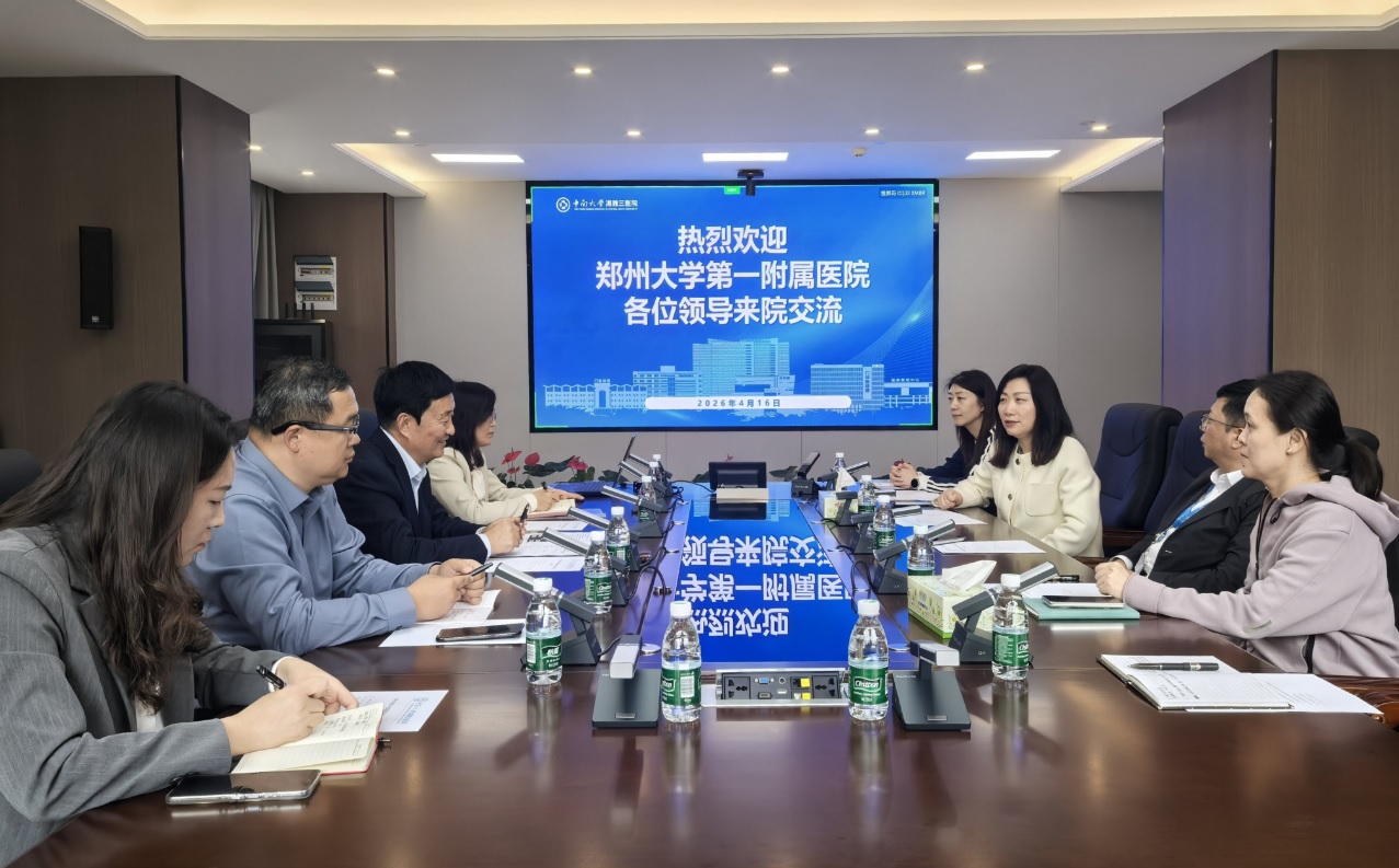 2026年4月16日下午,河南省医学信息质控中心、互联网医疗系统与应用国家工程实验室主任、郑州大学第一附属医院原副院长赵杰团队来到湘雅三医院,就湖南省医院信息化质控中心建设与管理的先进经验开展学习交流。中南大学湘雅三医院党委副书记、湖南省医院信息化质控中心主任杨飞龙,中南大学湘雅三医院副院长左笑丛出席,医学信息研究中心、信息网络中心负责人参加,双方围绕湖南省医院信息化质控中心的工作经验、中南大学湘雅三医院信息化建设成绩等展开深入探讨,凝聚合作共识。