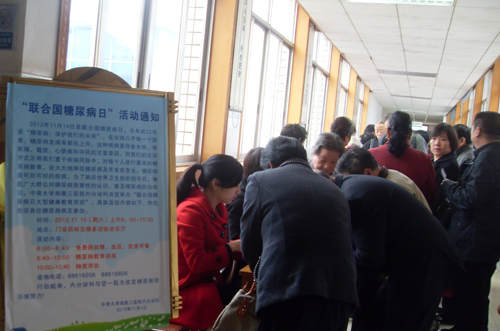 除了每年举办这类大型联合国糖尿病日主题活动外,内分泌科每2周还举办一次面向患者的内分泌疾病的宣教活动,内容包括了糖尿病及其并发症、甲亢、骨质疏松等,使患者加强对自身疾病的了解,进行自我监测,保护和延缓疾病的进展。