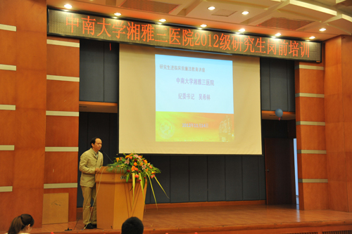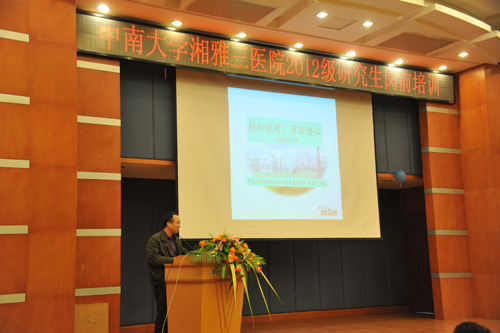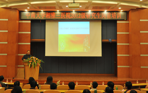 11月13-16日,湘雅三医院研究生部在湘雅医学院新校区前栋4楼国际报告厅,举行了为期三天的2012级研究新生临床轮科岗前培训。院领导罗爱静、陈方平、吴希林、邓云龙出席了会议,研究生部全体工作人员及2012级硕士140人、博士47人参加了此次培训。会议由主管研究生教育的黄飞舟副院长、研究生部副主任袁秀洪及研究生党支部书记罗海波轮流主持。