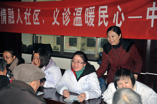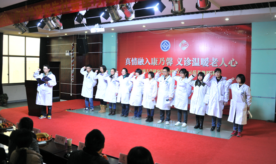 湘雅三医院研究生现场发表医护宣言并为康乃馨呵护中心老人们开展爱心义诊。