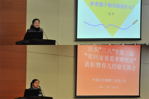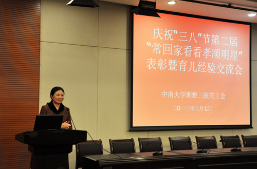 3月7日下午,院工会在外科楼二楼学术报告厅举行了第二届常回家看看孝顺明星表彰会暨育儿经验交流会。会场显示屏上滚动播出着古今中外的敬老名言,《常回家看看》、《孝顺》两首歌曲的旋律在耳边响起,受表彰的孝顺明星们的优秀事迹也在循环播出。会议由党委副书记、工会主席邓云龙主持,100余人参加了此次会议。