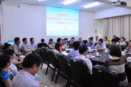 8月3日上午,安徽省立医院、深圳市盐田区卫生与计划生育局和深圳市第七人民医院、长沙市中心医院来院交流,院长陈方平、院长助理范自力在综合楼三楼一会议室出席接待。