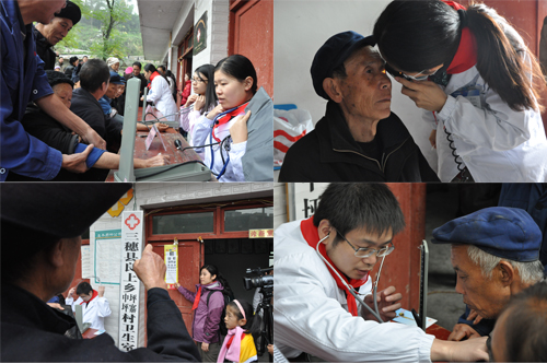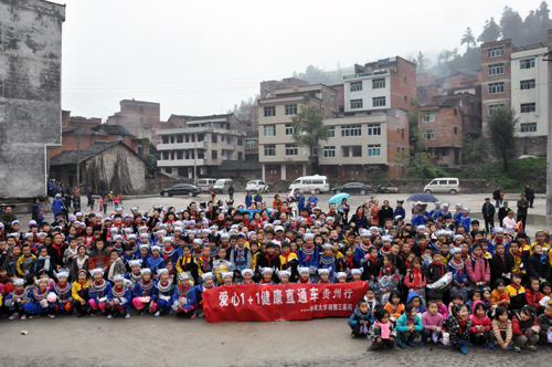 义捐在孩子们满足的笑声中结束,来自儿科、心内科、神经内科、烧伤皮肤科、眼科的医生早已端坐在临时搭成的坐诊台前,为慕名前来中小学生及乡亲们进行体检,并赠送了部分常用药品。