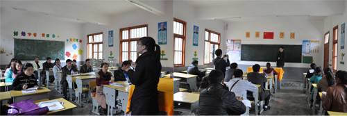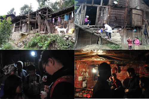 午餐过后,志愿者们顾不上休息,马不停蹄地开始了分组走访,30余名志愿者分为5组,徒步进入村落进行慰问、捐赠、义诊等活动。尽管有所准备,当用木棍和牛粪搭成的房子,衣衫单薄破旧、甚至连一双把脚包严实点的鞋子也没有的孩子出现在志愿者们的眼前时,他们的心还是感觉到了深深的刺痛与震撼。志愿者们纷纷握着孩子们的手,耐心地询问家里的情况,留下了自己的电话号码,有的还与孩子建立了长期的资助关系,并表示要资助小朋友直到大学毕业。随队前来的5名志愿者的小孩也不再像在学校时那样兴奋,都安静了许多,默默地看着爸爸妈妈和留守儿童,若有所思的样子。