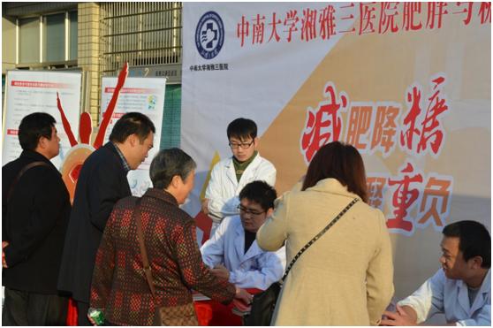 11月14日,世界糖尿病日,中南大学湘雅三医院肥胖与代谢病外科治疗中心为进一步提高群众和病友对糖尿病、肥胖症认识与防治意识,在我院门诊前坪举办肥胖与糖尿病手术治疗大型义诊活动。